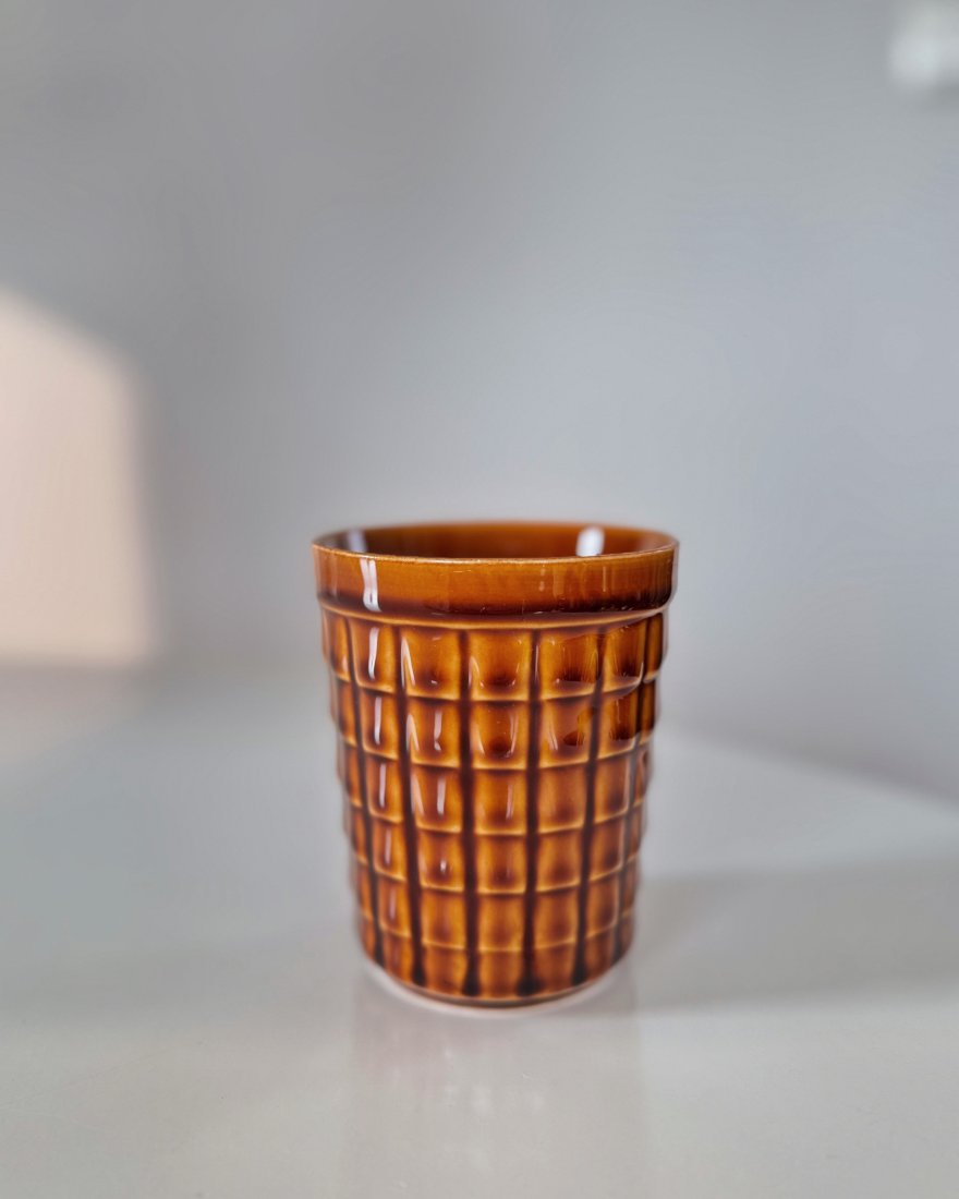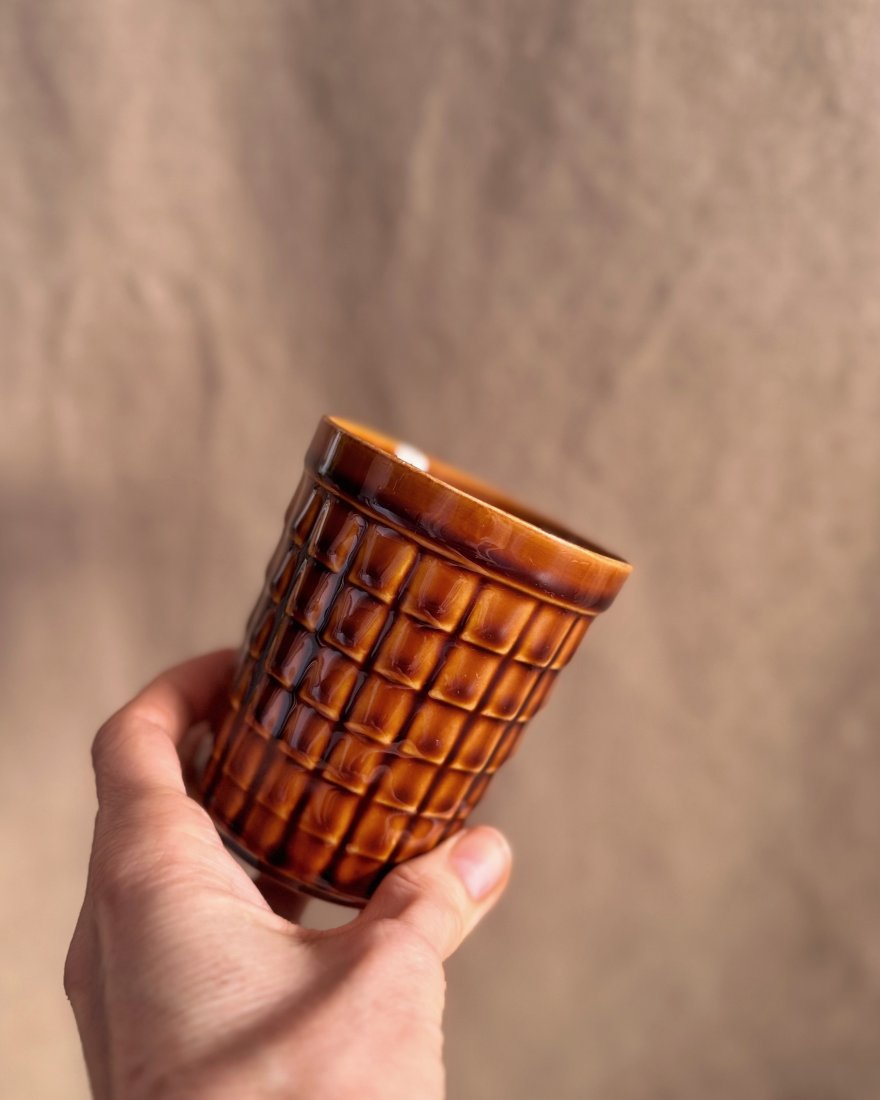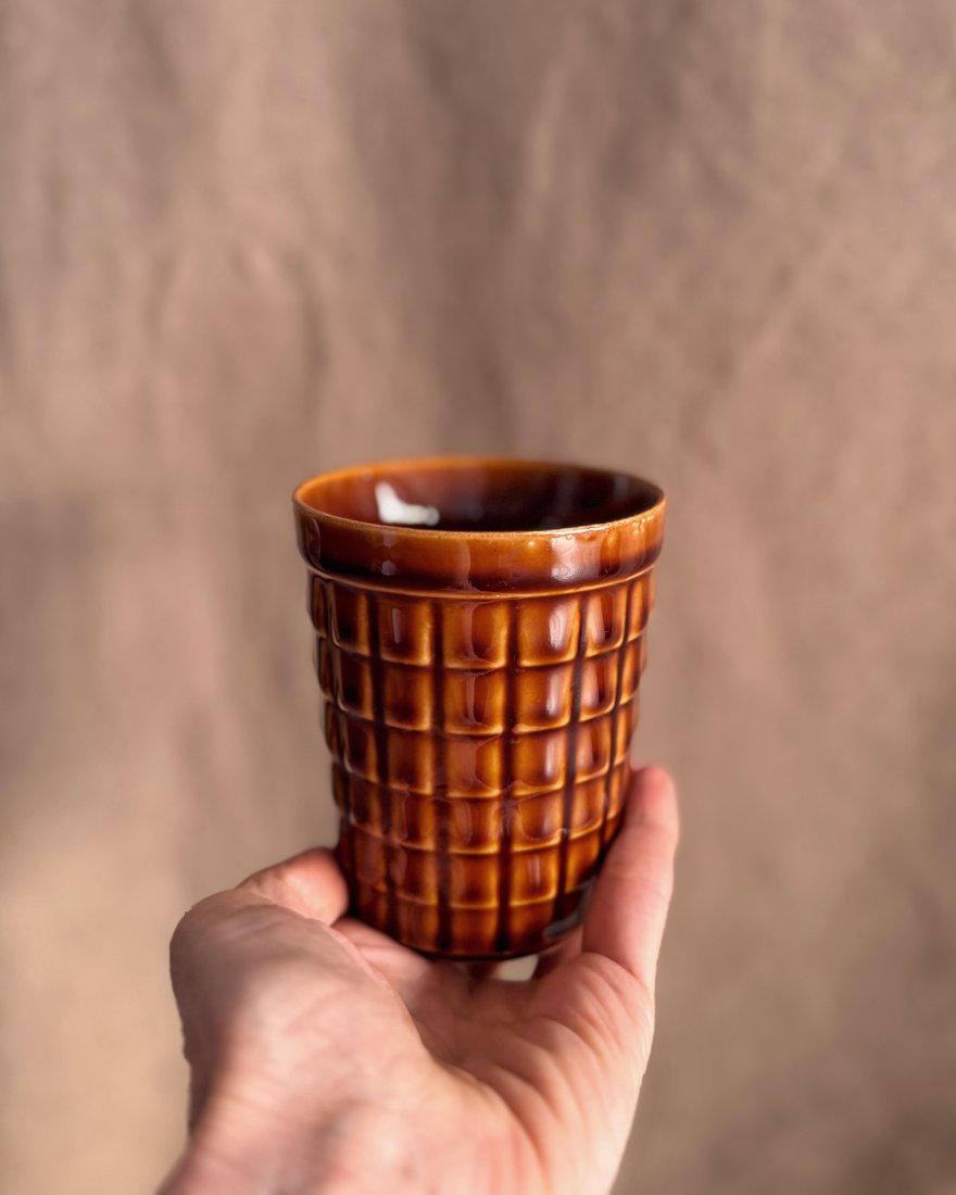 Kubek barowy to klasyka PRL-u - kultowa Irenka, tutaj w wersji bez uchwytu w klasycznym brązowym kolorze.