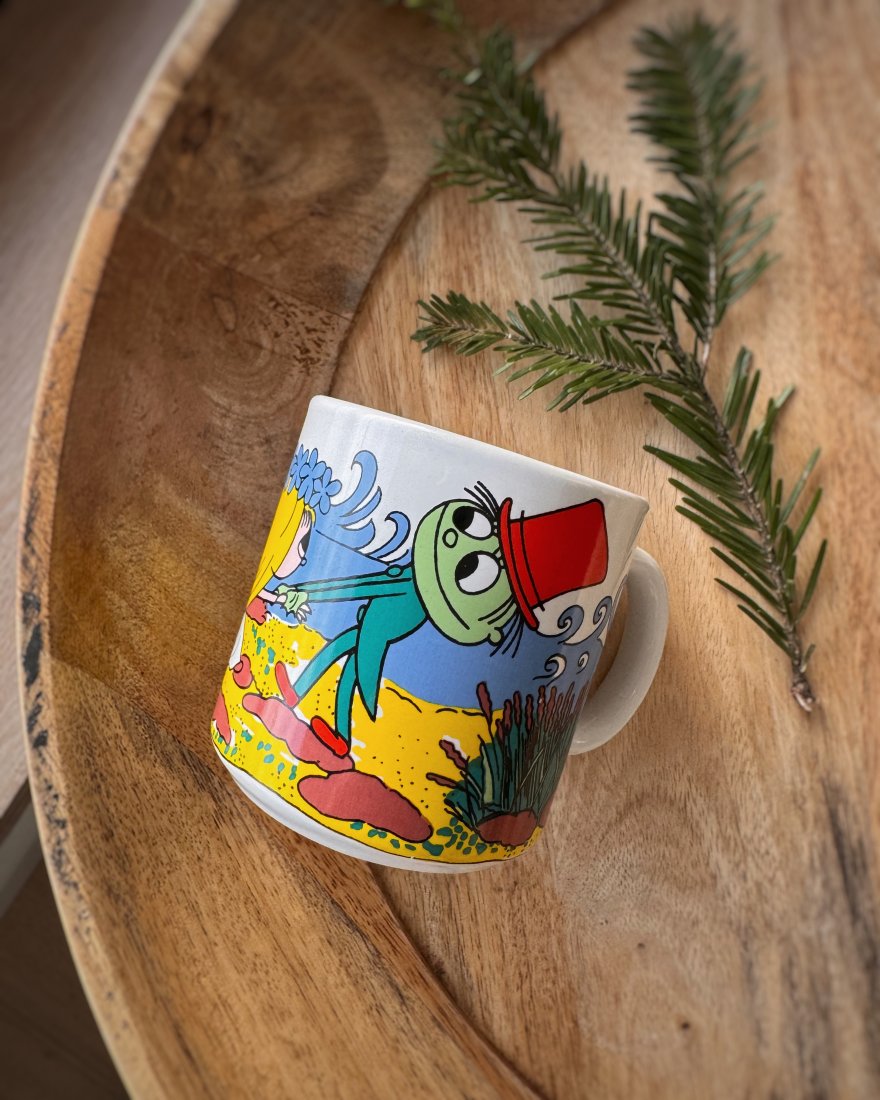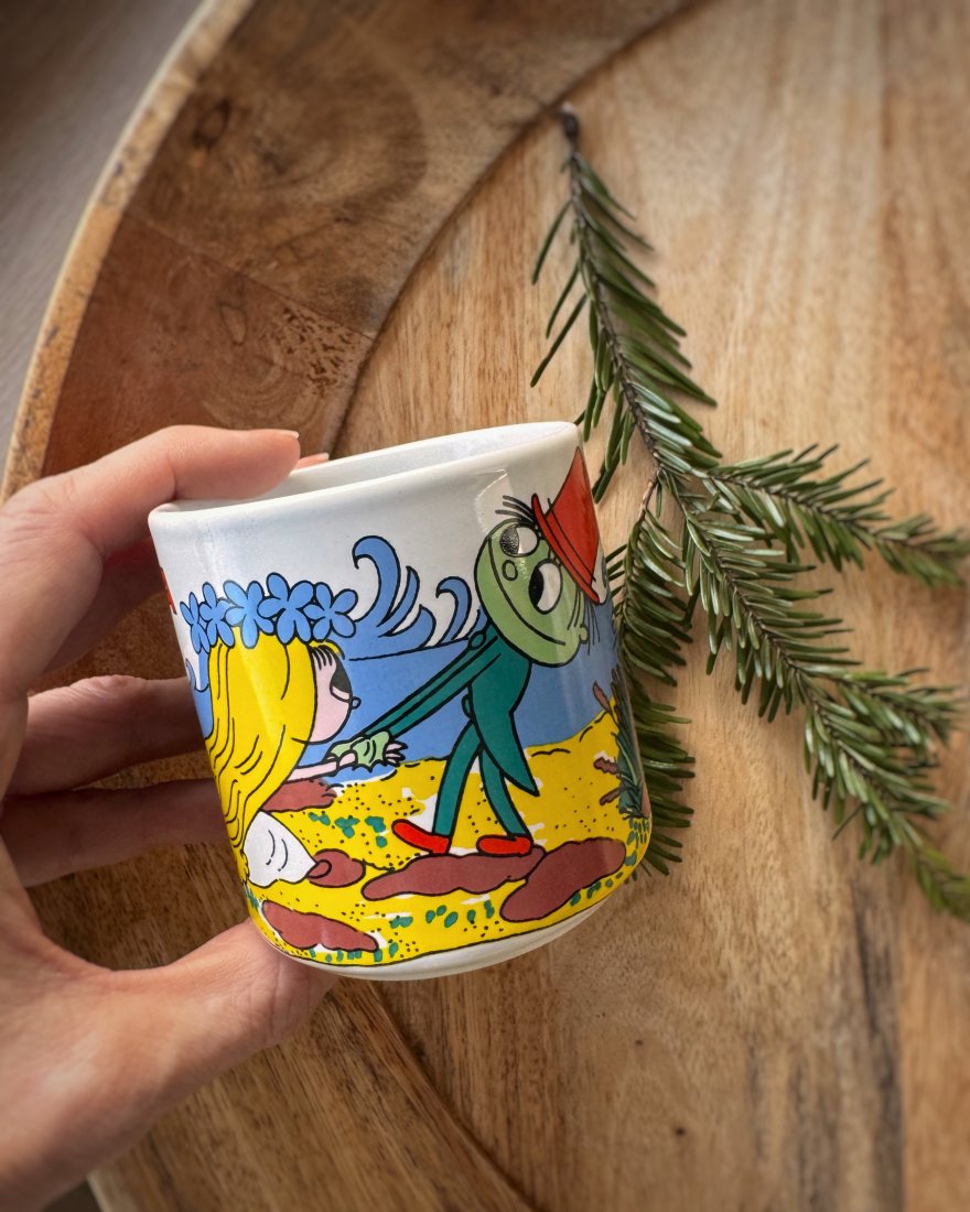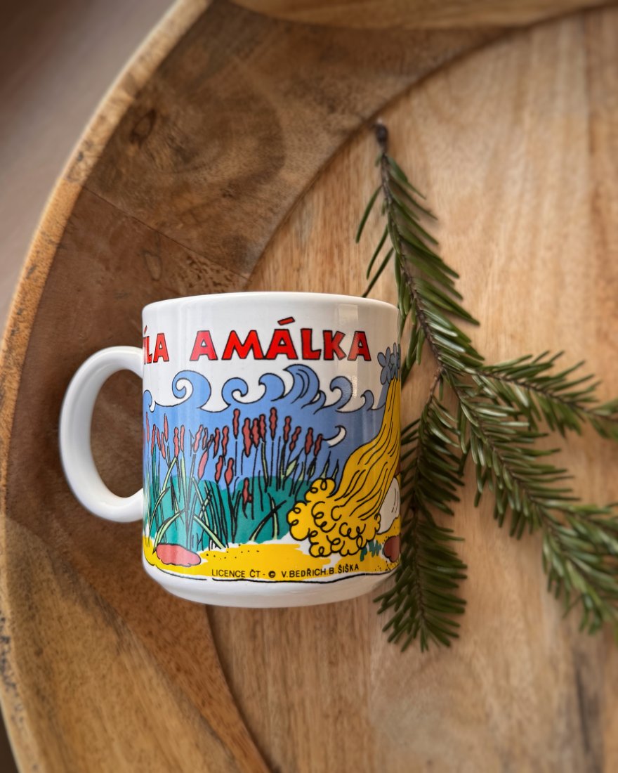 Kubek porcelanowy z postaciami z czechosłowackiej kreskówki - Amalka z lat 70-tych.