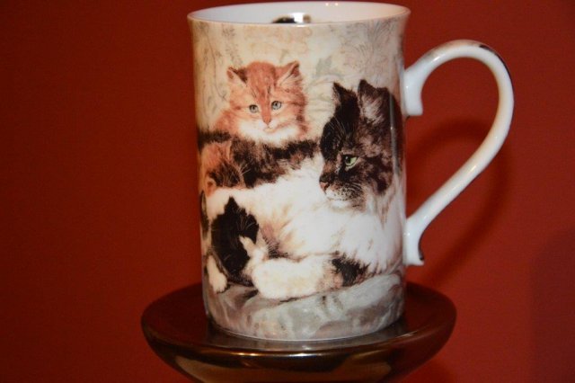 Duży porcelanowy kubek z kociakami.Wysokość 10,5 cm , średnica 7 cm