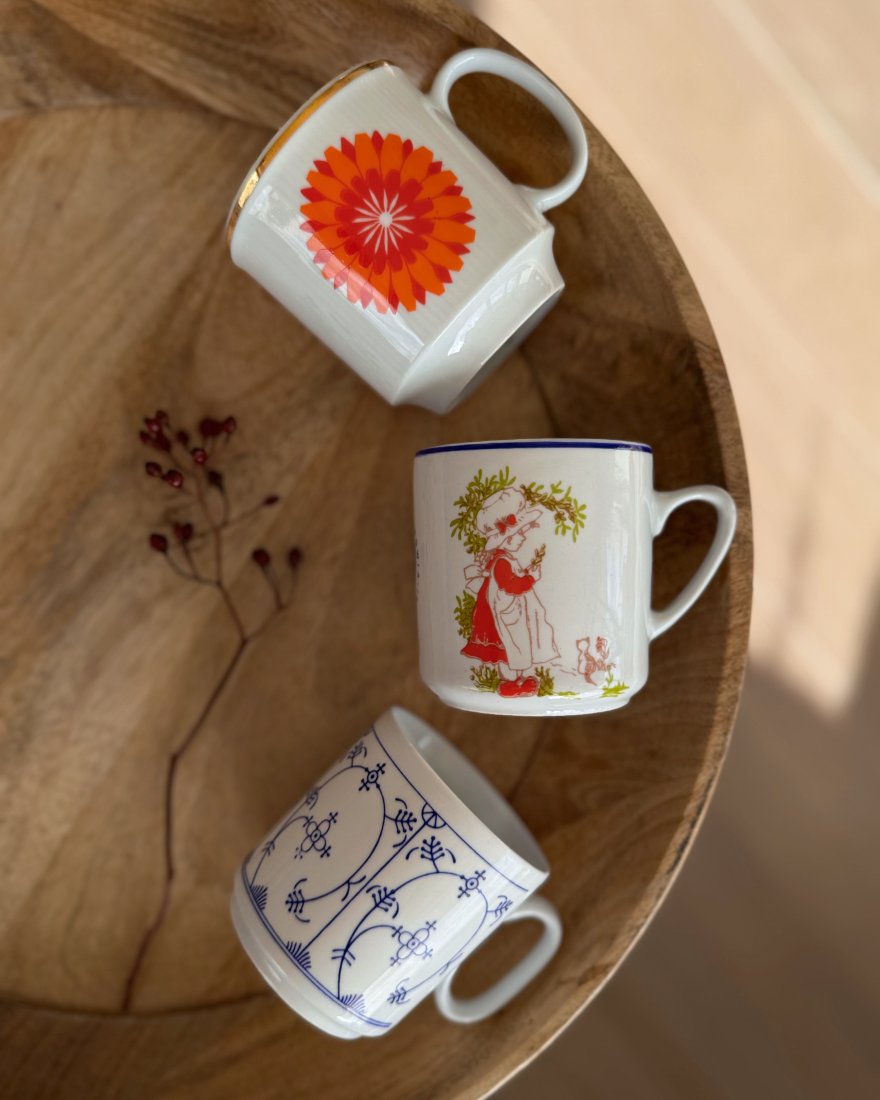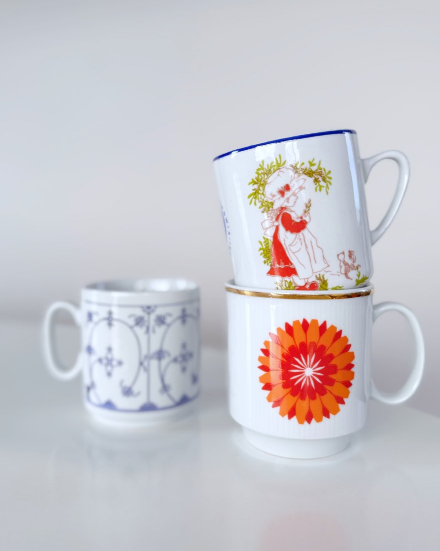 Kubek porcelanowy vintage z ozdobnymi kalkomaniami z dziećmi i logo CZMP.