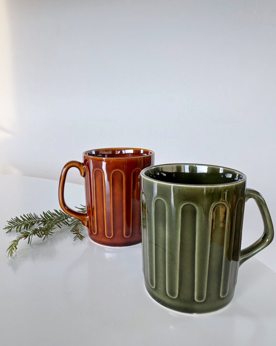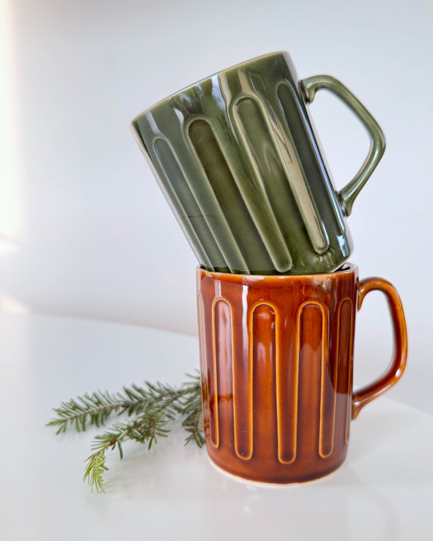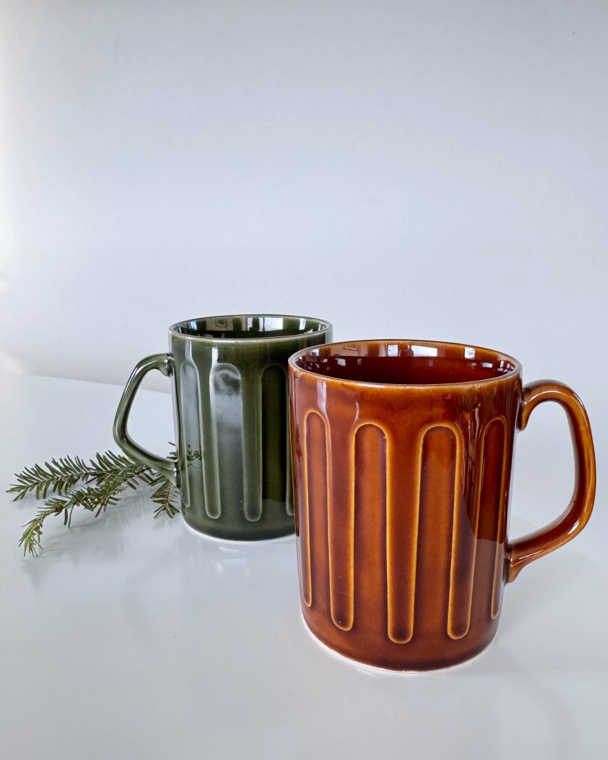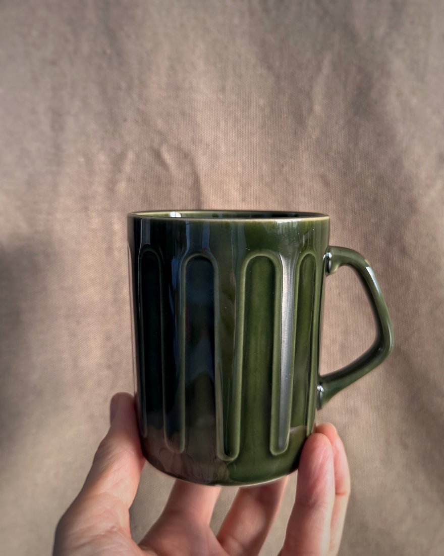 Kubek barowy z uchwytem, wzór zwany pasy / sople, kolor zielony.