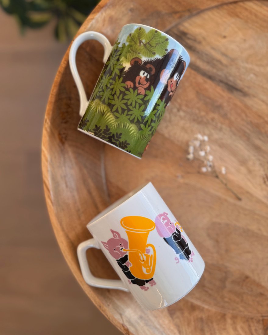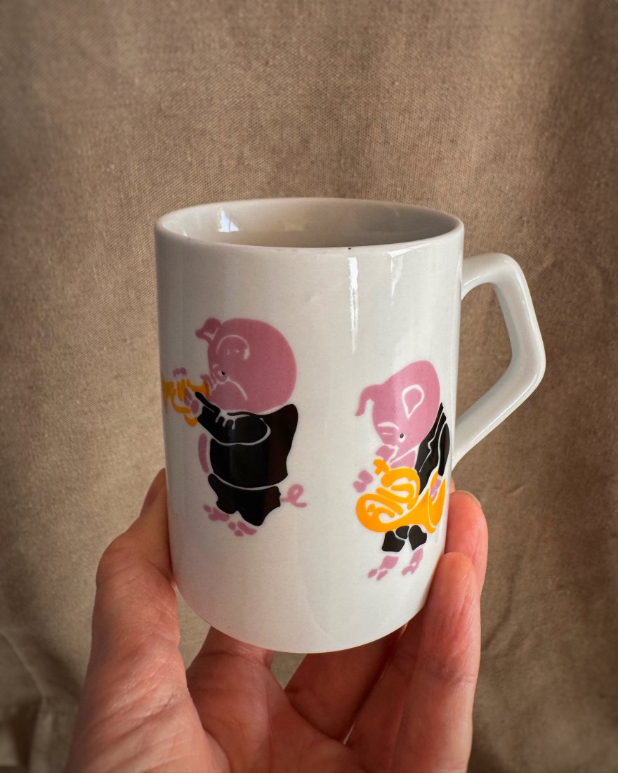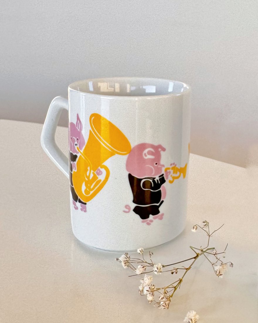 Kubek z prosiaczkową orkiestrą dętą z węgierskich zakładów porcelany z tradycjami.