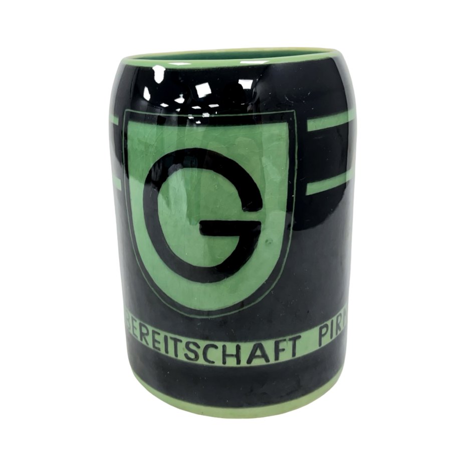 Kufel pamiątkowy wykonany dla 19. Grenzbereitschaft Pirna, jednostki wschodnioniemieckiej Straży Granicznej (NRD), lata 50. XX wieku.