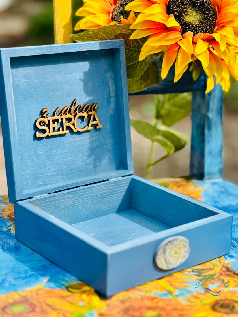 Drewniane i oryginalne pudełko na drobiazgi, biżuterię czy pamiątki.