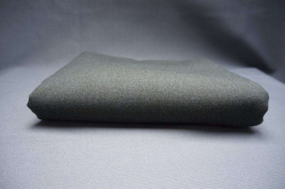 Kupon tkaniny na spódnicę. Kolor szary. Dwa brzegi zakończone fabrycznie. Stan bardzo dobry.