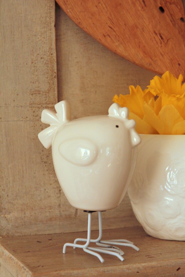 Urocza, biała ceramiczna kurka na cienkich nóżkach:) Idealna na Wielkanoc, może być niezobowiązującym upominkiem!