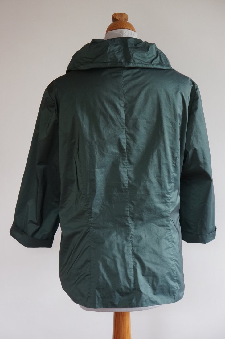 Elegancka kurteczka/marynarka znanej marki Vera Mont.Rękawy ¾ zakończone mankietem. Fantazyjny kołnierz /marszczony/. Guziki obciągnięte tym samym materiałem co wdzianko. Stan bardzo dobry.