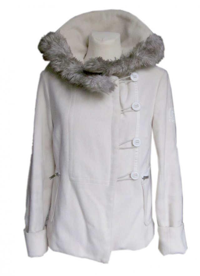Przefajna kurteczka w kolorze ecru z świetnym kołnierzem ozdobionym sztucznym futerkiem. Rozmiar 36 (na małe 38 też będzie OK). Zapinana na guziki, z kieszeniami. Dokładne wymiary podam na życzenie. Stan: bdb! RZECZ NIE POCHODZI Z SECONDHANDU. W razie pytań, proszę o kontakt.