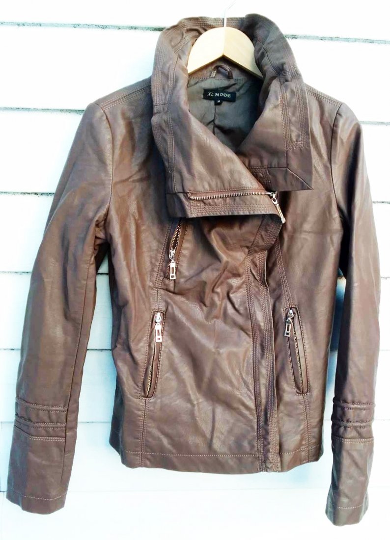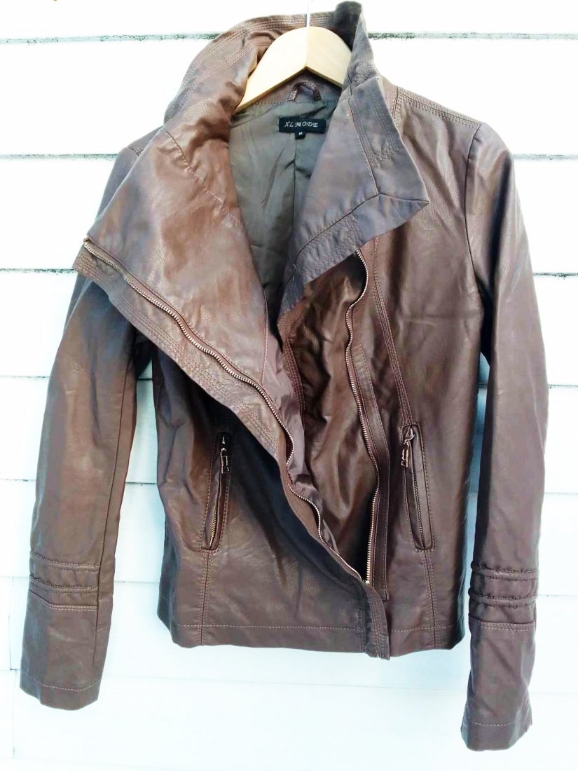 BRĄZOWA KURTKA EKOSKÓRA NA PODSZEWCE,TYLKO PRZYMIERZANA