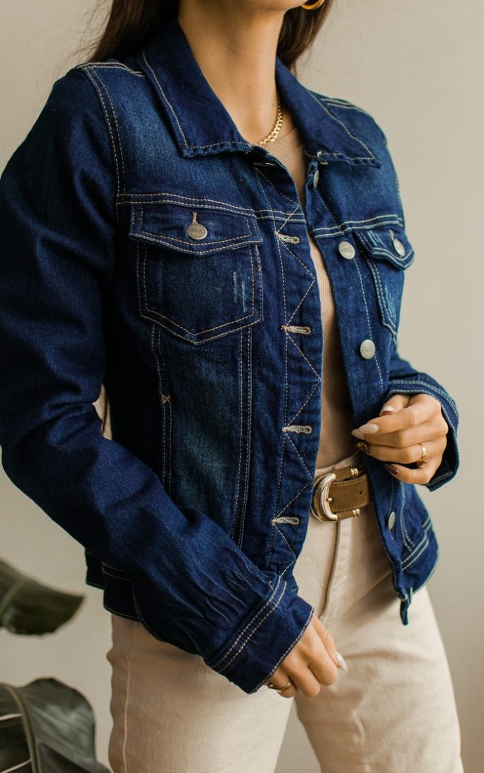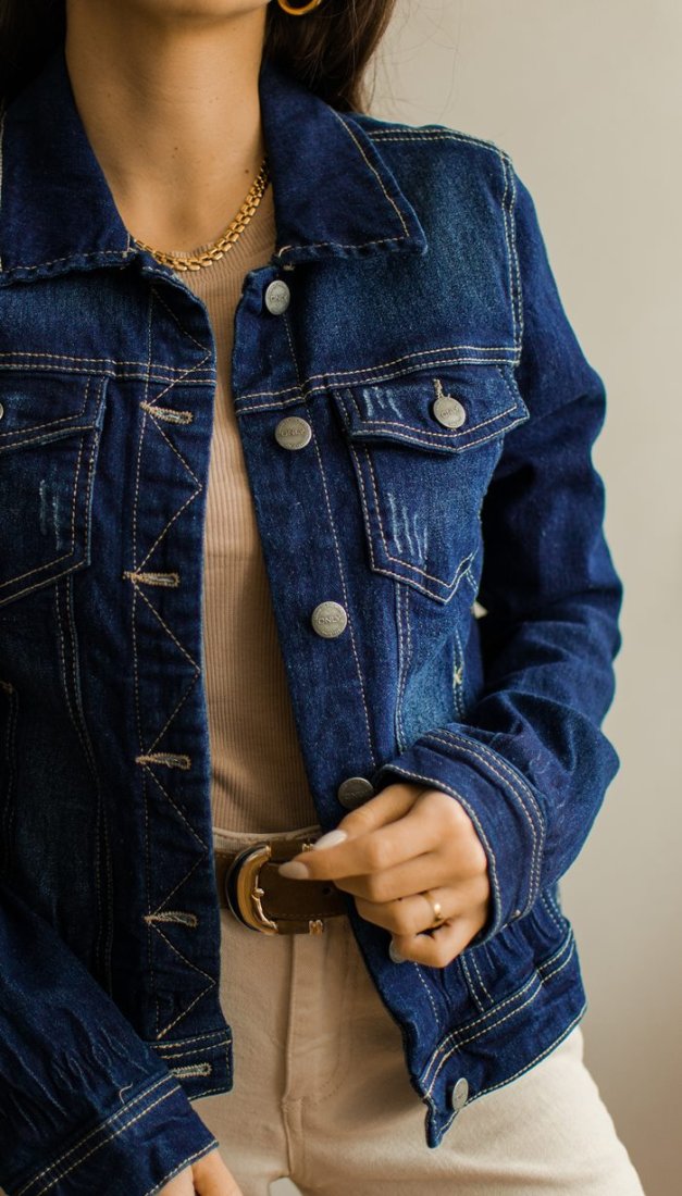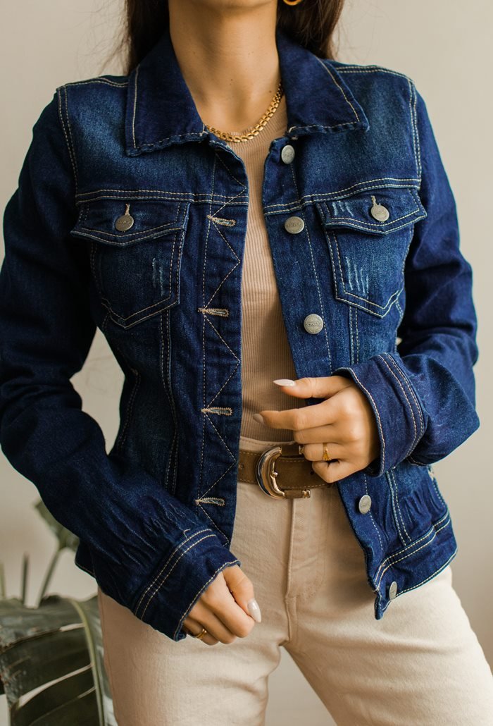 Dopasowana kurtka jeansowa.
