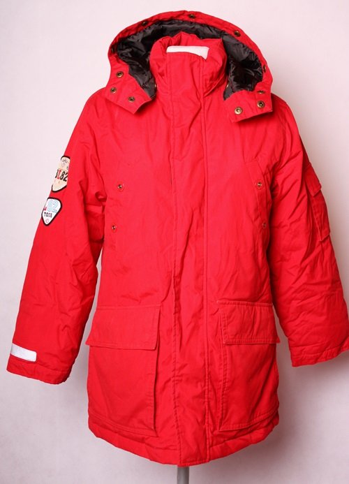 puchowa kurtka zimowa z kapturem/odpinany/,(na 146cm) marki H&M L.O.G.G.stan bardzo dobry,zapinana na zamek dwustronny i na rzepy,