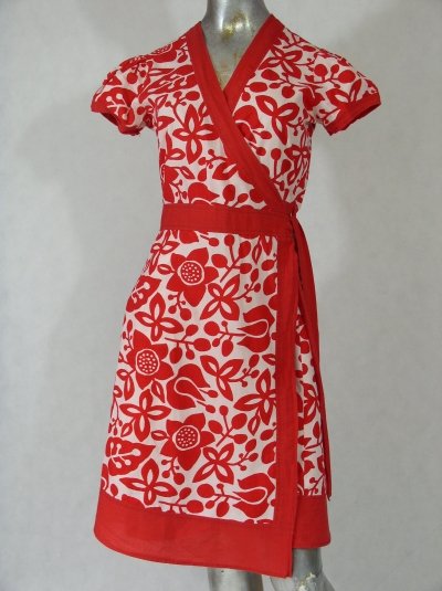 Sukienka portfelowa firmy Kushi.Rozmiar 12,nasz 38-40.Materiał bawełna.Odcięta w pasie z wstawionym czerwonym pasem.Wiązana na boku.Rękawek mały,bufki.Stan bardzo dobry.Długość 100 cm.