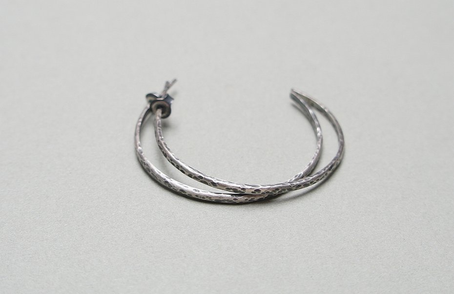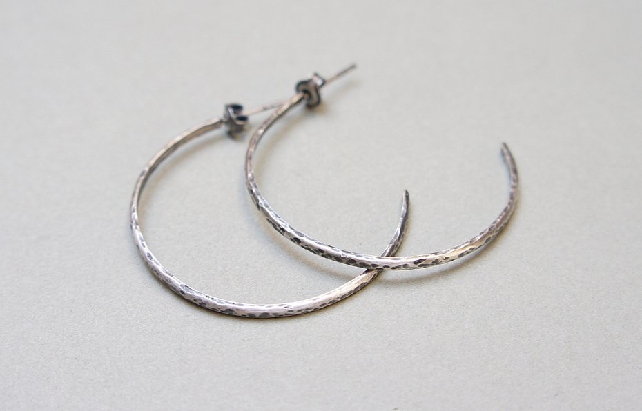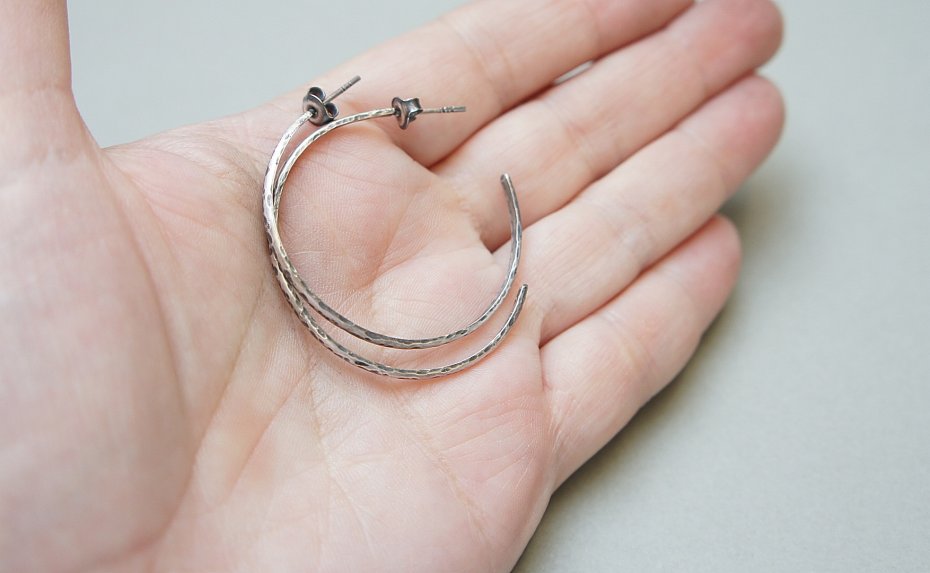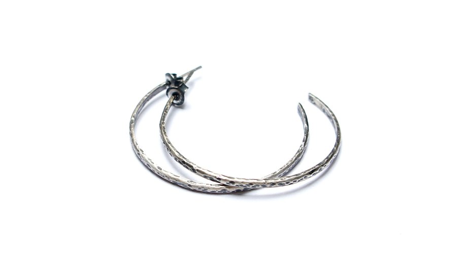 Kolczyki wykonane od podstaw ze srebra [pr. 925 i 930]. Srebrne koła kute [śr. 37mm]. Szerokość [2mm]. Srebro oksydowane i przetarte. Biżuteria ozdobnie zapakowana