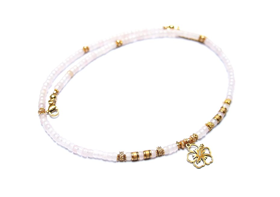 Tagi: #choker, #krótki naszyjnik, #kwarc różowy, #stal szlachetna
