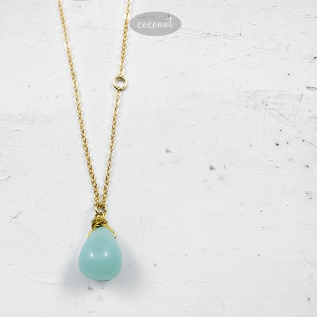kropla kwarcu niebiańskiego ok. 15 mm o bladym zabarwieniu błękitno-miętowym.