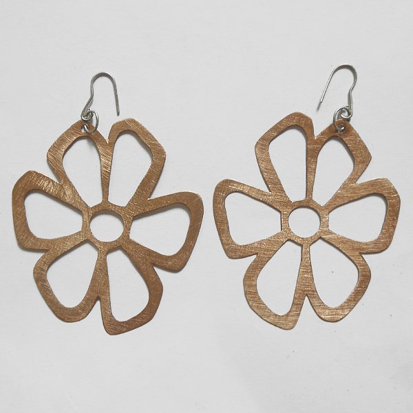 Efektowny, nowoczesny, a zarazem romantyczny dodatek. KWIAT to uroczy i delikatny wzór. W wyjątkowy sposób łączy on ażur z metalem, który przyciąga wzrok jak mało która ozdoba. Kolczyki wykonane są z - brąz, srebro. Brąz: zmatowiony. Bigle otwarte - srebro pr.925, długość z biglami: 9 cm szerokość: 6,3 cm .