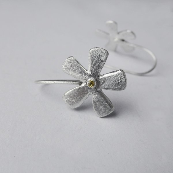 Efektowny, nowoczesny, a zarazem romantyczny dodatek. KWIAT to uroczy i delikatny wzór. Kolczyki wykonane są ze srebra., cyrkonia Srebro - próby 0,925, zmatowione. Szerokość 17mm. wysokość ok. 3 cm. Waga - ok. 3g