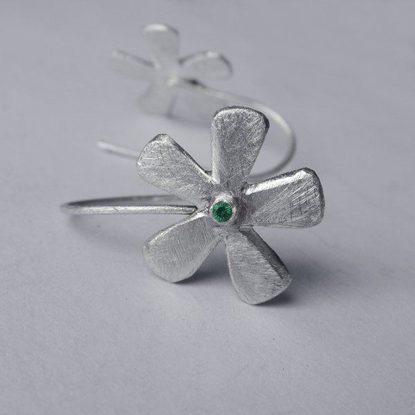 Efektowny, nowoczesny, a zarazem romantyczny dodatek. KWIAT to uroczy i delikatny wzór. Kolczyki wykonane są ze srebra., cyrkonia Srebro - próby 0,925, zmatowione. Szerokość 17mm. wysokość ok. 3 cm. Waga - ok. 3g