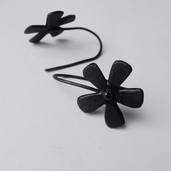 Efektowny, nowoczesny, a zarazem romantyczny dodatek. KWIAT to uroczy i delikatny wzór. Kolczyki wykonane są ze srebra., cyrkonia Srebro - próby 0,925, zmatowione, oksydowane. Szerokość 17mm. wysokość ok. 3 cm. Waga - ok. 3g