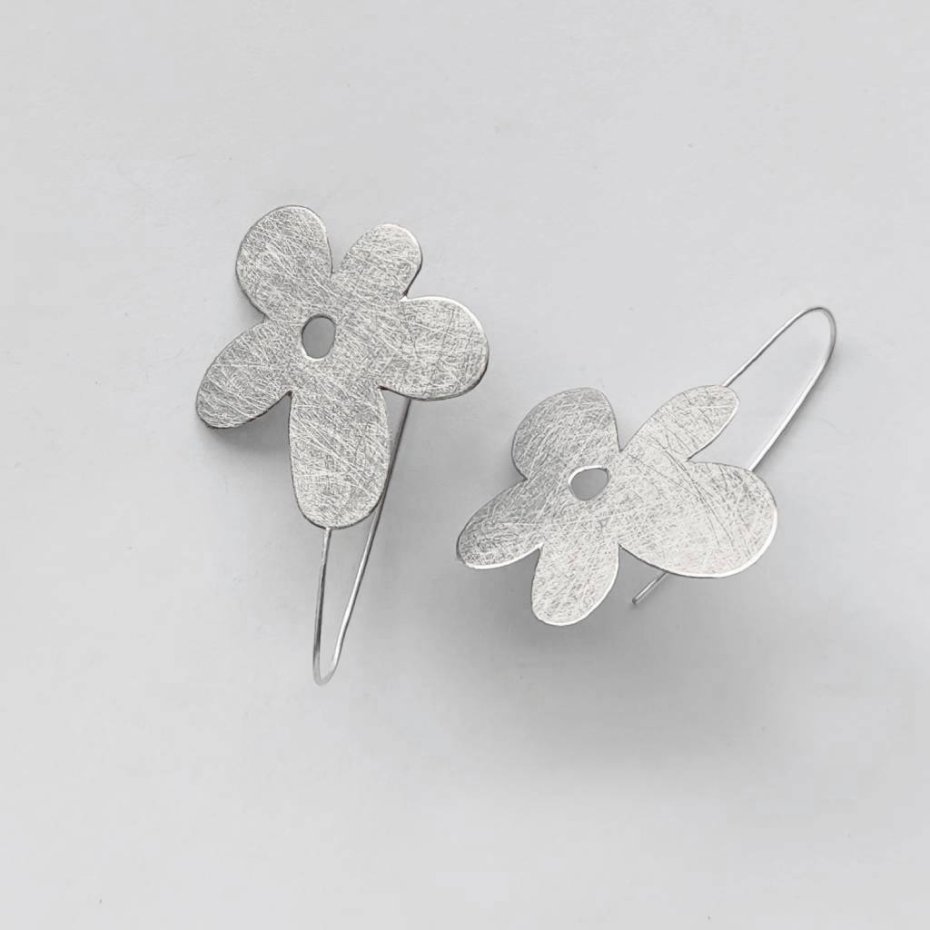 Efektowny, nowoczesny, a zarazem romantyczny dodatek. KWIAT to uroczy i delikatny wzór. Kolczyki wykonane są ze srebra, alpaka. Srebro - próby 0,925, zmatowione, alpaka - zmatowiony Szerokość 3,5 cm. długość ok. 5 cm.
