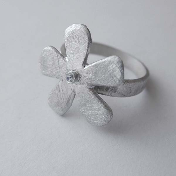 Efektowny, nowoczesny, a zarazem romantyczny dodatek. KWIAT to uroczy i delikatny wzór. Pierścionek wykonany jest ze srebra, cyrkonia. Wielkość kwiatka 1,7 cm /1,7cm Srebro - próby 0,925, zmatowione. Przy składaniu zamówienia proszę podać rozmiar (lub średnicę wewnętrzną pierścionka).