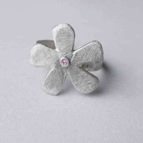 Efektowny, nowoczesny, a zarazem romantyczny dodatek. KWIAT to uroczy i delikatny wzór. Pierścionek wykonany jest ze srebra, cyrkonia. Wielkość kwiatka 1,7 cm /1,7cm Srebro - próby 0,925, zmatowione. Przy składaniu zamówienia proszę podać rozmiar (lub średnicę wewnętrzną pierścionka).