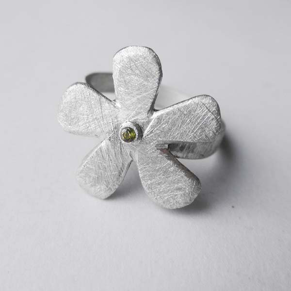 Efektowny, nowoczesny, a zarazem romantyczny dodatek. KWIAT to uroczy i delikatny wzór. Pierścionek wykonany jest ze srebra, cyrkonia. Wielkość kwiatka 1,7 cm /1,7cm Srebro - próby 0,925, zmatowione. Przy składaniu zamówienia proszę podać rozmiar (lub średnicę wewnętrzną pierścionka).