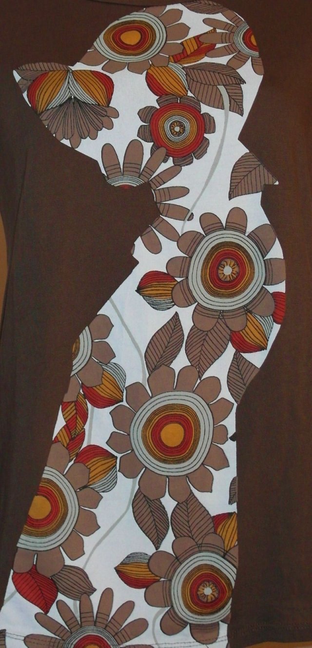 Kolor - brąz piernikowy, rudo ceglaste kwiaty na tle ecru.