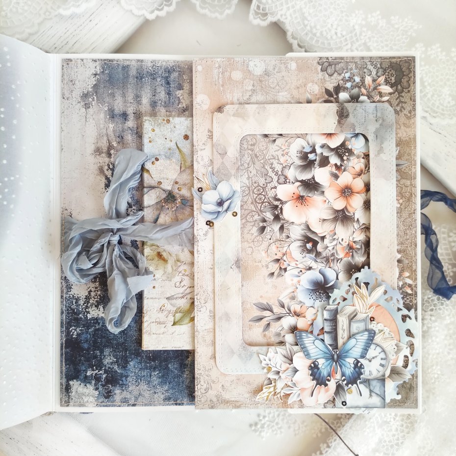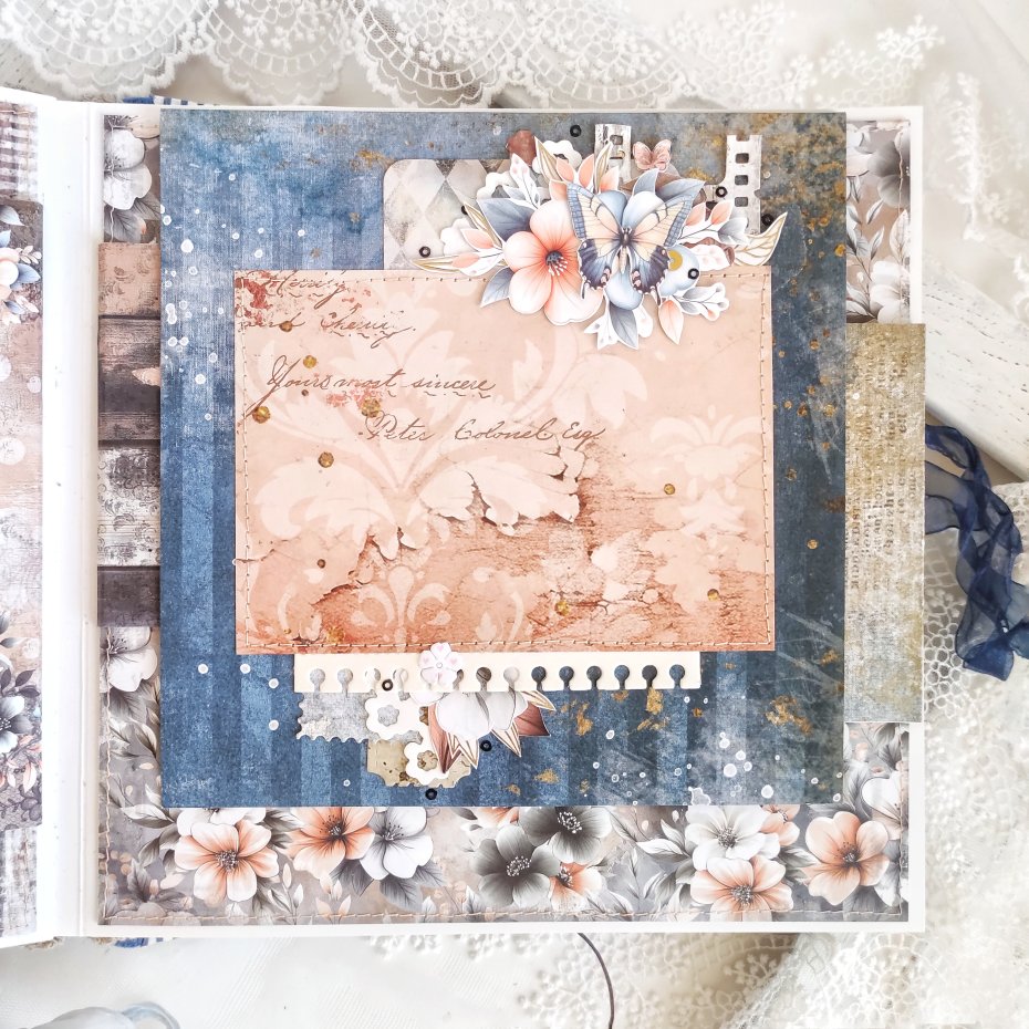 Zachowaj najcenniejsze chwile życia w tym ręcznie wykonanym, kwiatowym albumie na zdjęcia, stworzonym z miłością i dbałością o każdy detal. Album z niebieskim, zamszowym grzbietem, elegancką, paskowaną okładką oraz kwiatowymi akcentami w odcieniach brzoskwini i złota doskonale nadaje się do przechowywania wyjątkowych wspomnień — od urodzin i rocznic po małe, codzienne radości.