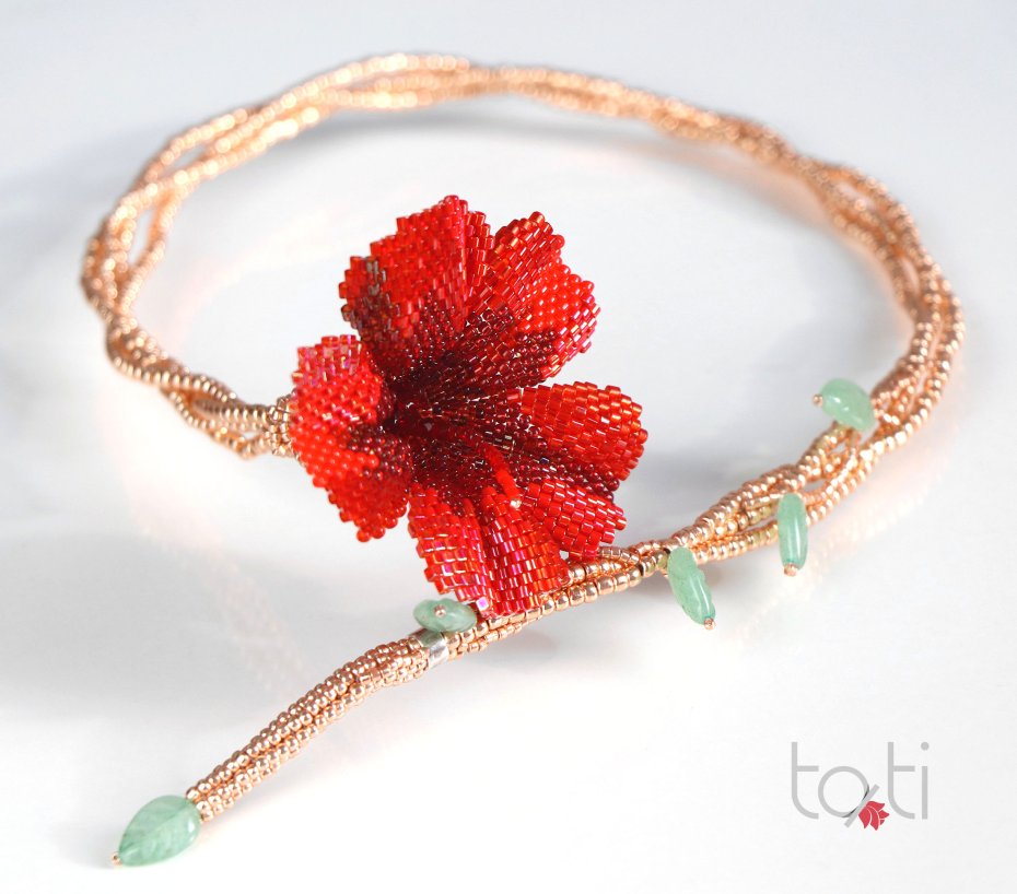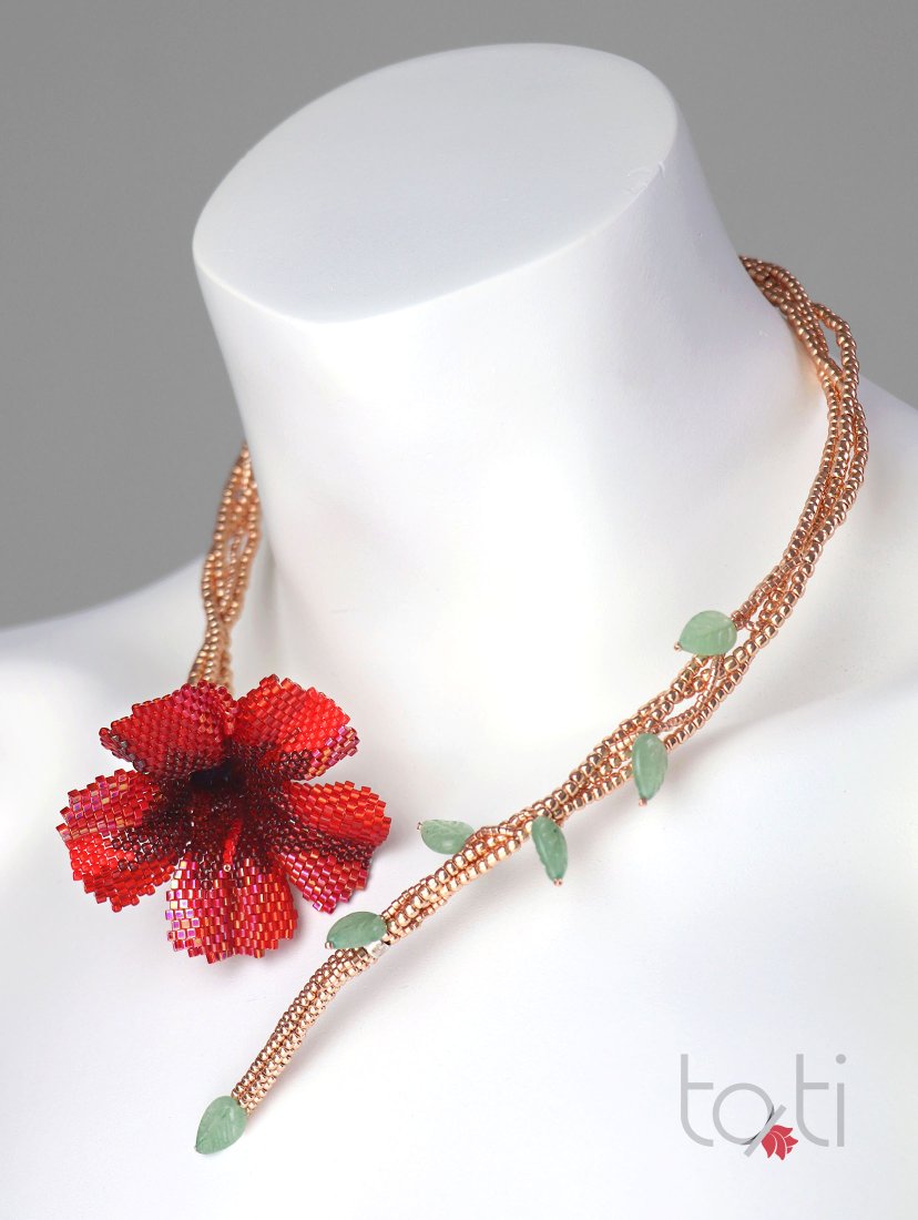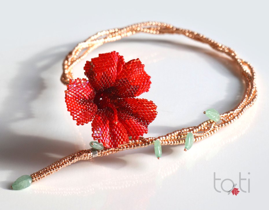 Robić pięknie - mój zawód, moje powołanie i moja pasja. Uwielbiam kwiaty i kolory, ale ich piękno jest ulotne. Dlatego postanowiłam zatrzymać je na dłużej. Połączyłam delikatność kwiatów z blaskiem koralików. Tak narodził się mój pierwszy kwiat z koralików – i pierwszy naszyjnik.