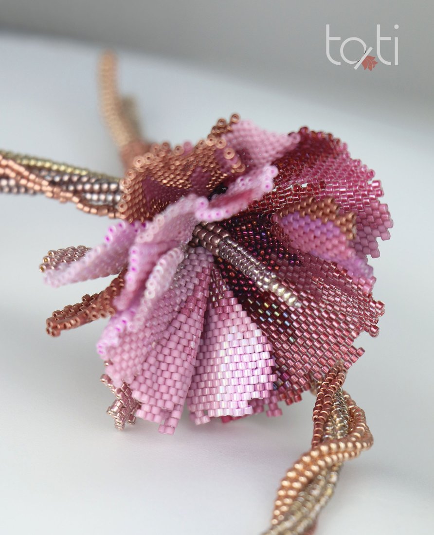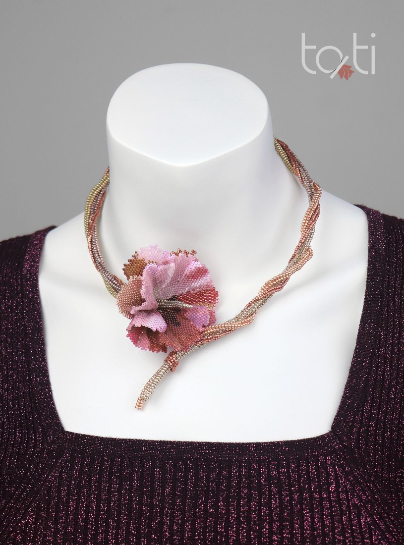 Robić pięknie - mój zawód, moje powołanie i moja pasja. Uwielbiam kwiaty i kolory, ale ich piękno jest ulotne. Dlatego postanowiłam zatrzymać je na dłużej. Połączyłam delikatność kwiatów z blaskiem koralików. Tak narodził się mój pierwszy kwiat z koralików – i pierwszy naszyjnik.