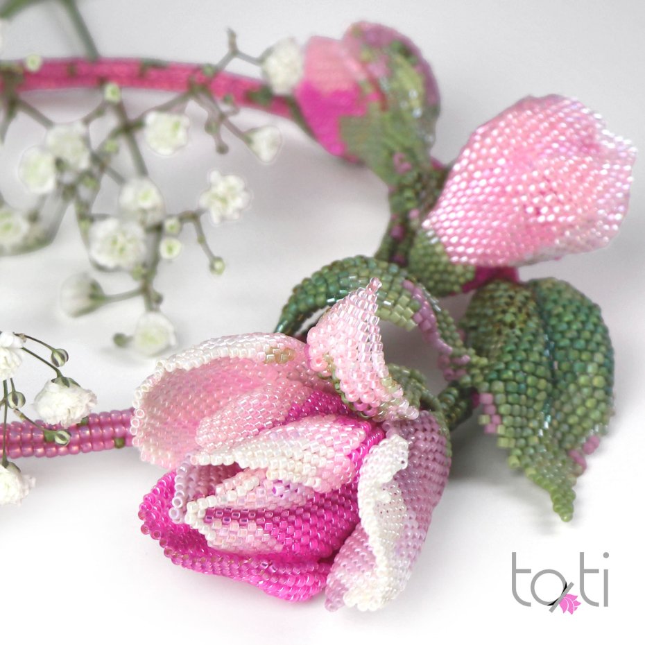 Robić pięknie - mój zawód, moje powołanie i moja pasja. Uwielbiam kwiaty i kolory, ale ich piękno jest ulotne. Dlatego postanowiłam zatrzymać je na dłużej. Połączyłam delikatność kwiatów z blaskiem koralików.