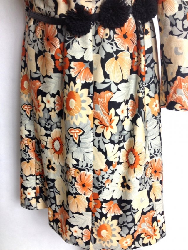 Dłuższa rozkloszowana sukienka w kwiatowe printy na podszewce z tyłu zasuwana na suwak.Sukienka o luźniejszym kroju, można nosić z paskiem lub bez.