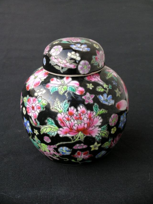 Porcelanowe naczynie z przykrywką, bardzo eleganckie, kwiatowe, dekoracyjne... Doskonałe np. na herbatę. Wzór ręcznie barwiony, lekko fakturowy, na satynowo szkliwiony, wygląda jak emaliowany. Sygnowany, chiński. Świetny zarówno do klasycznych, jak i nowoczesnych przestrzeni :) Pękatość 11; wysokość 12,5 cm. Stan zachowania dobry plus.
