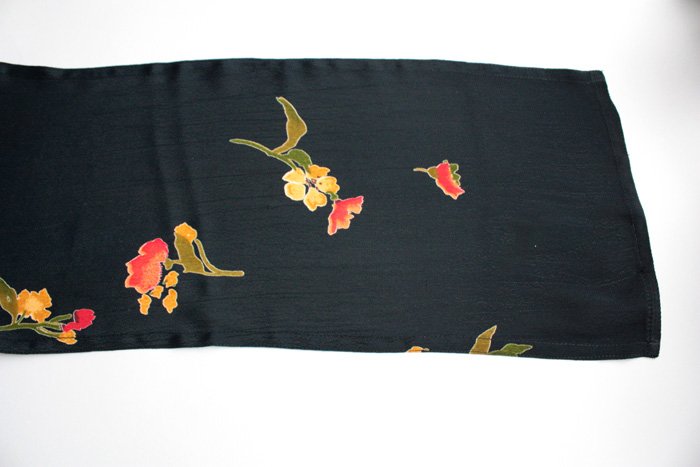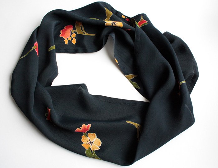 Szal w kwiaty na ciemnogranatowym tle. Materiał oceniam na wiskozę.