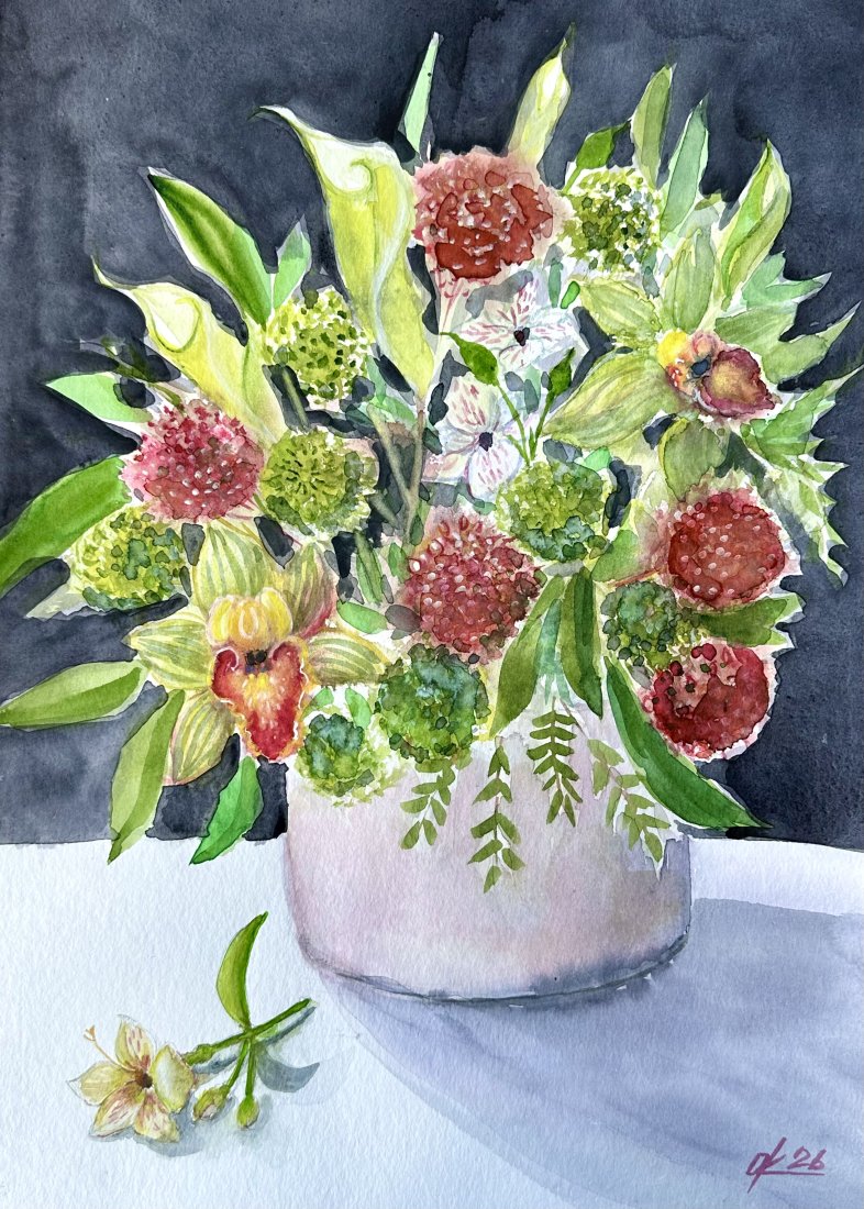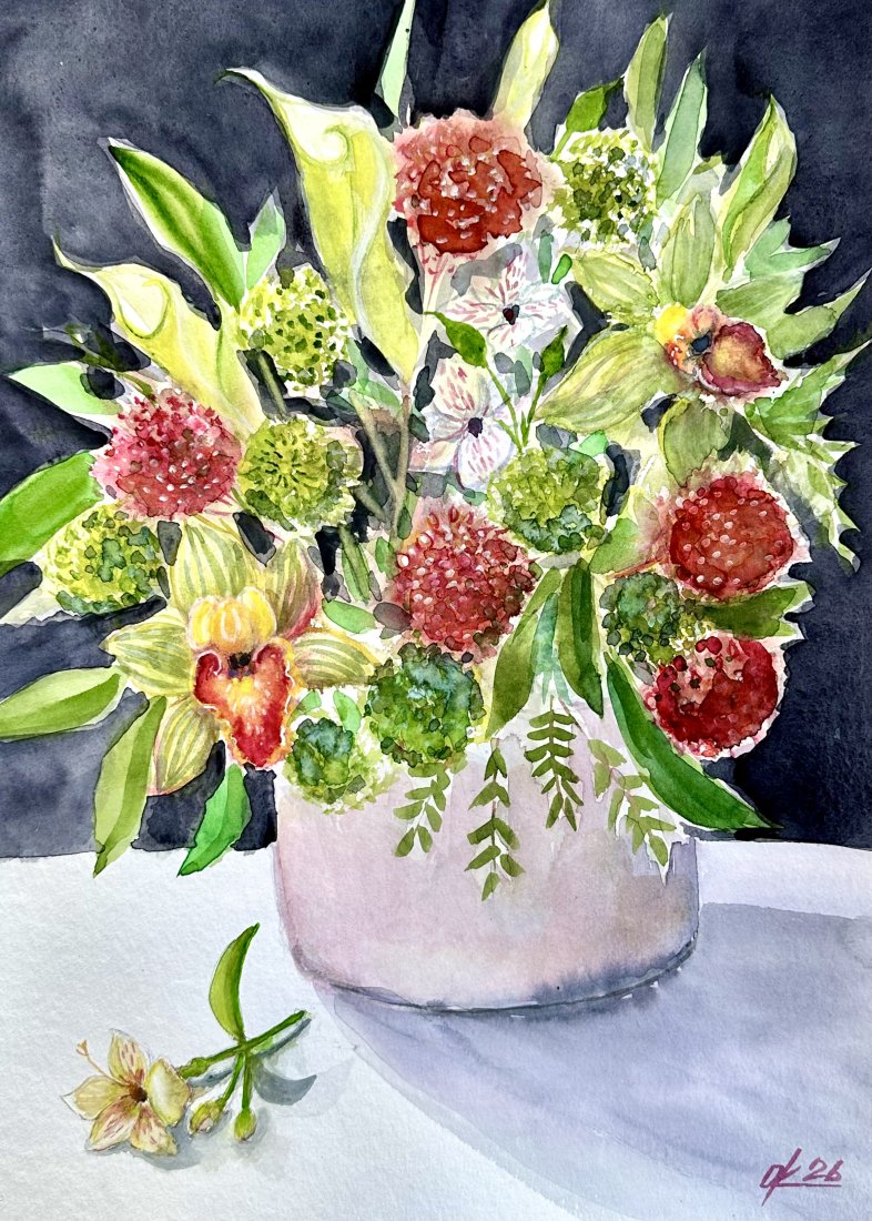 Tagi: #kwiaty w wazonie, #malowanie kwiatów, #original akwarela, #prezent urodzinowy