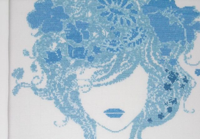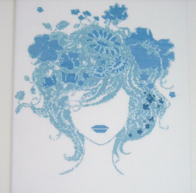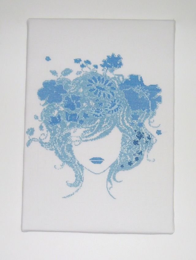 Nowy obraz ręcznie haftowany - Dziewczyna z kwiatami we włosach.