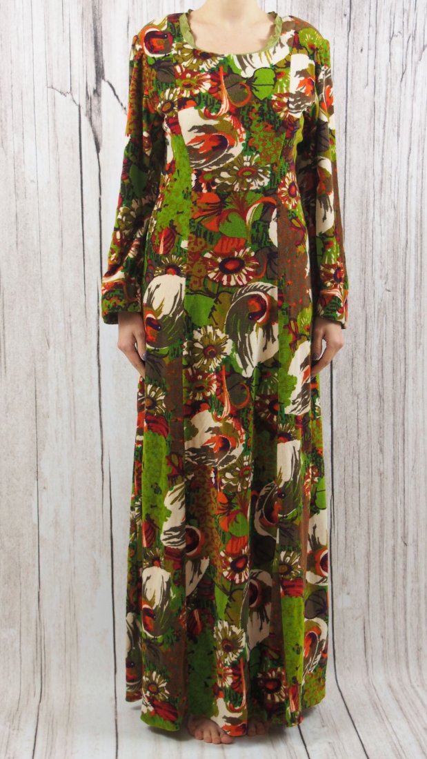 Długa pluszowa sukienka o pięknym kwiatowym wzorze.