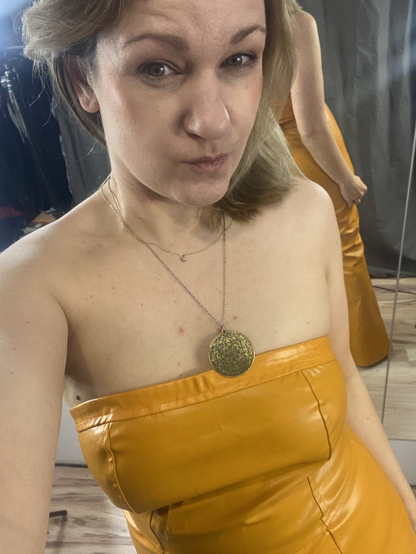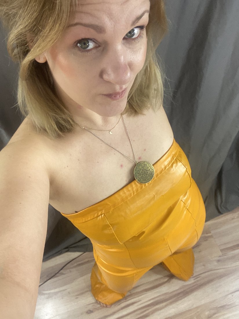 Z eko skóry. Elastyczny. U góry ma silikonowy pas trzymający całość idealnie nad biustem.