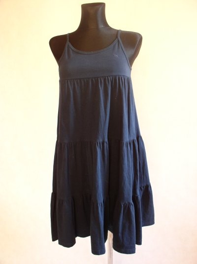 Granatowa sukienka firmy L.O.G.G.Rozmiar 34-148-152.Materiał bawełna.Odcięta pod biustem z wyhaftowanym konikiem.Doszyte trzy falbany.Stan bardzo dobry.Długość 95 cm.pod pachami 72 cm.pod biustem 72 cm.
