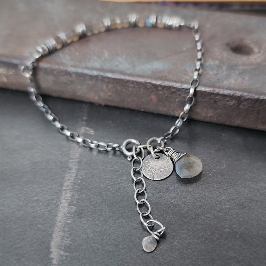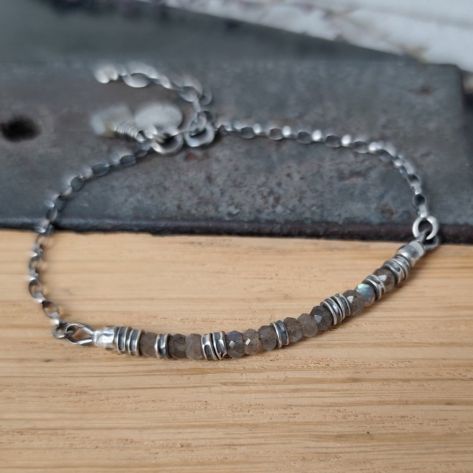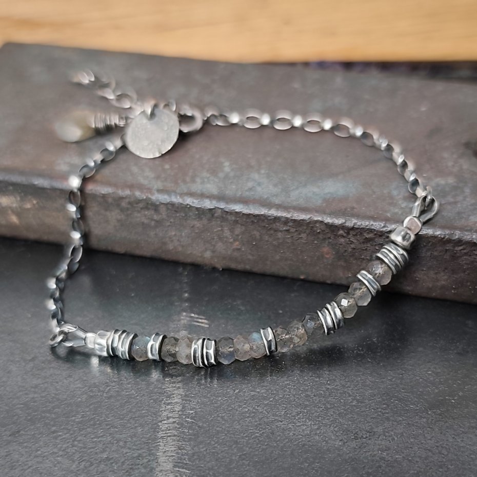 Tagi: #bransoletka z zawieszką, #labradoryt, #minimalistyczna bransoletka, #srebro oksydowane