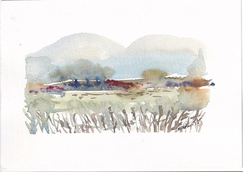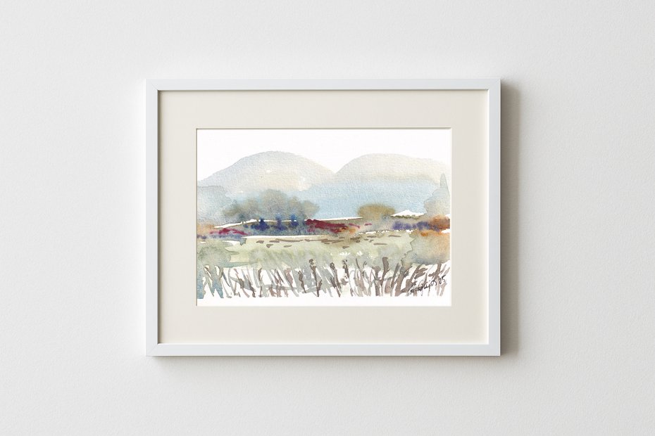Delikatna akwarela, Kompozycja, choć oszczędna, niesie w sobie głębię atmosfery i emocji — balansując między abstrakcją a sugestią natury.