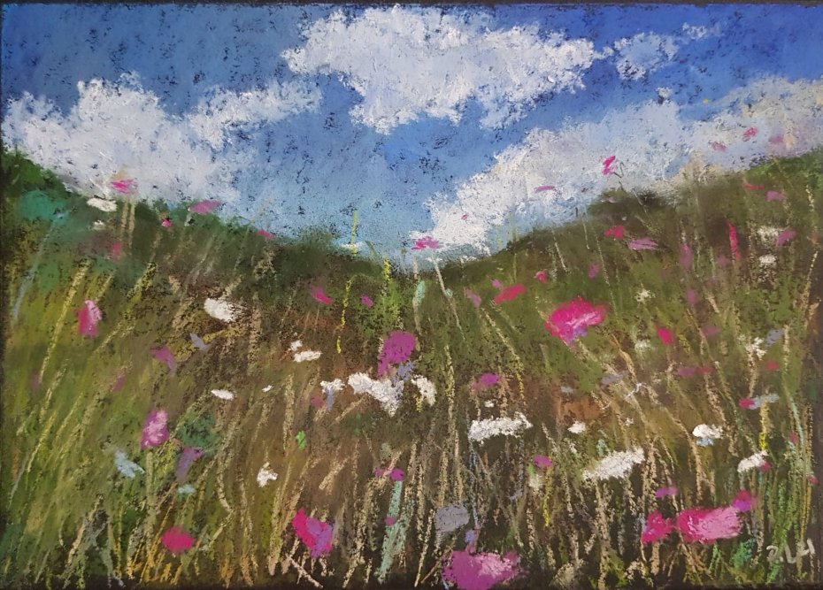 Praca wykonana pastelami suchymi na papierze przeznaczonym do pasteli 250g/m2, format A5.Rysuję kredkami dobrej jakości. Praca zabezpieczona fiksatywą. Zapraszam :)