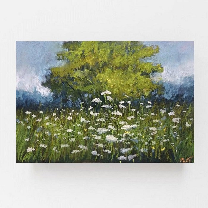 Praca wykonana pastelami suchymi na papierze przeznaczonym do pasteli 250 g/m2, format A4. Rysuję kredkami Sennelier/Rembrandt. Rysunek zabezpieczony fiksatywą. Zapraszam :)