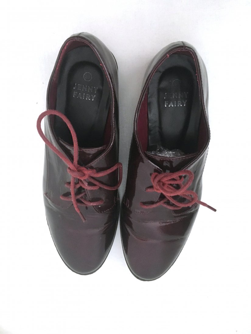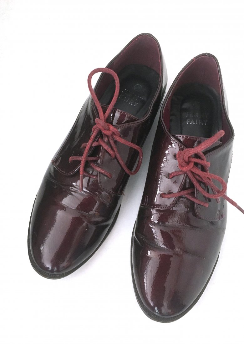 Lakierowane wiązane buty w stylu oxford w kolorze bordowym / śliwkowym