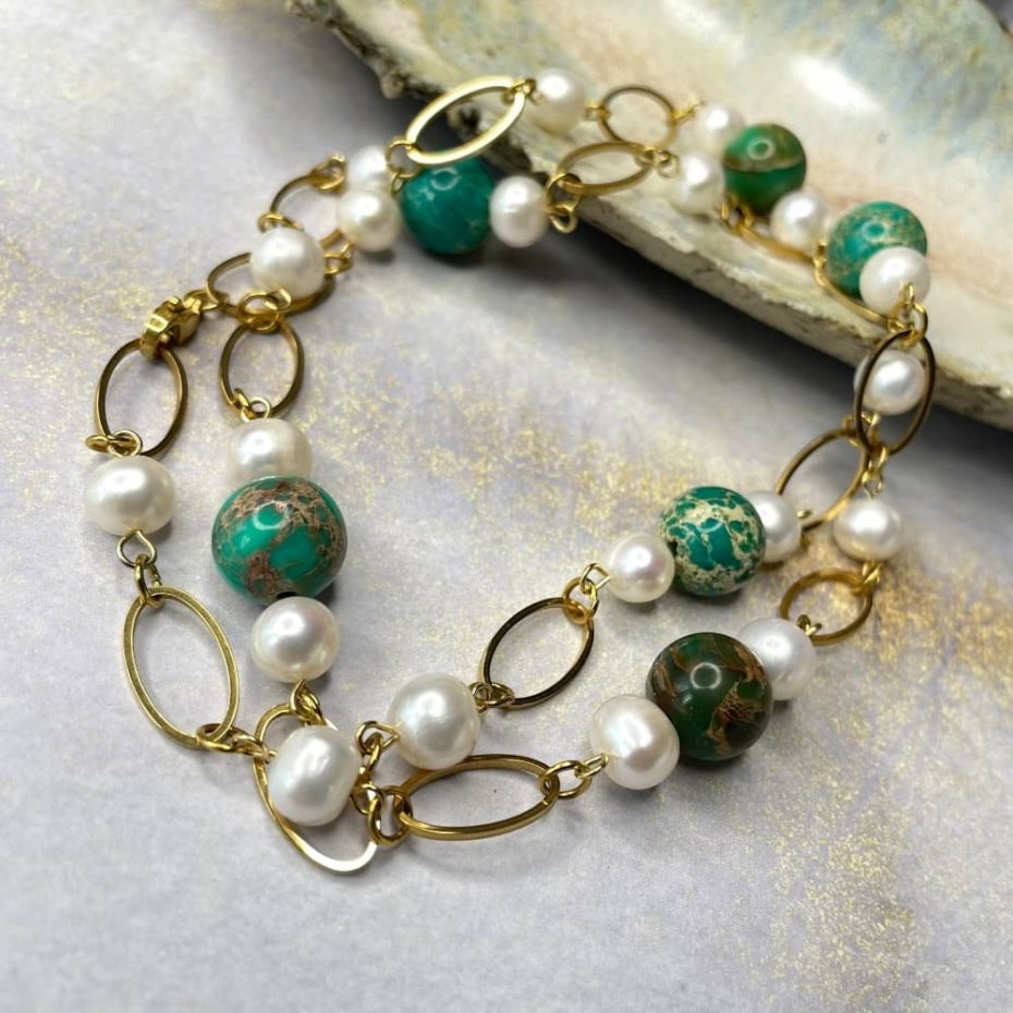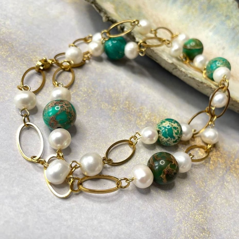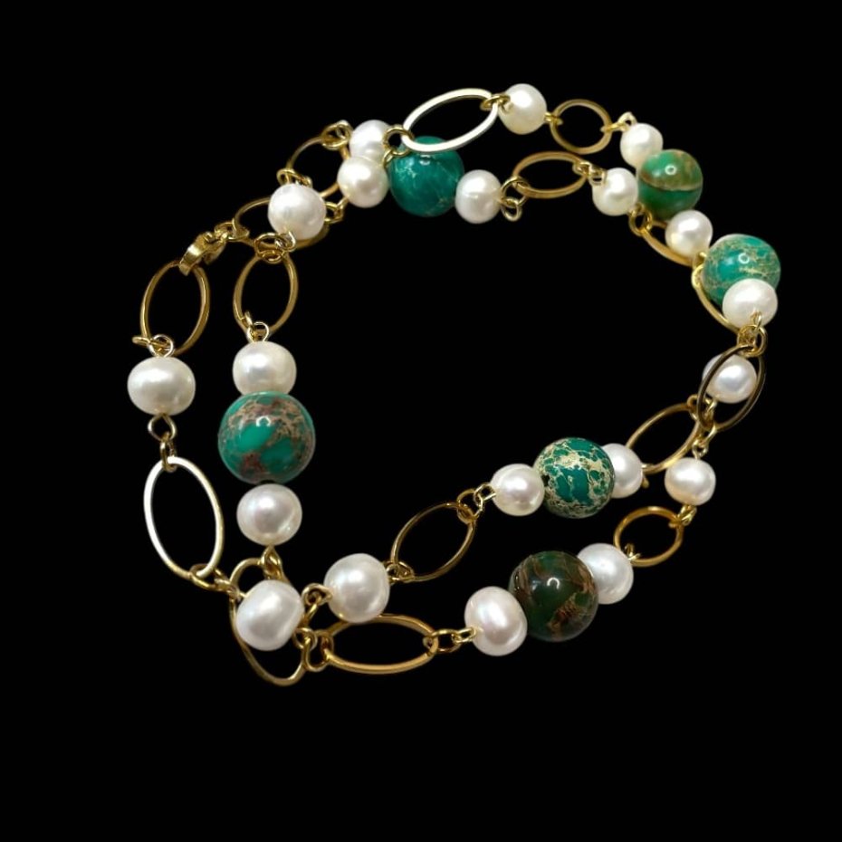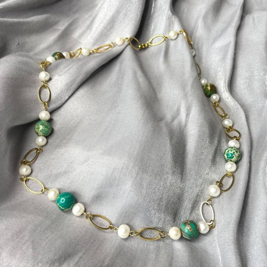 Tagi: #elegancki naszyjnik, #jaspis cesarski, #naszyjnik z perłami, #złocony naszyjnik
