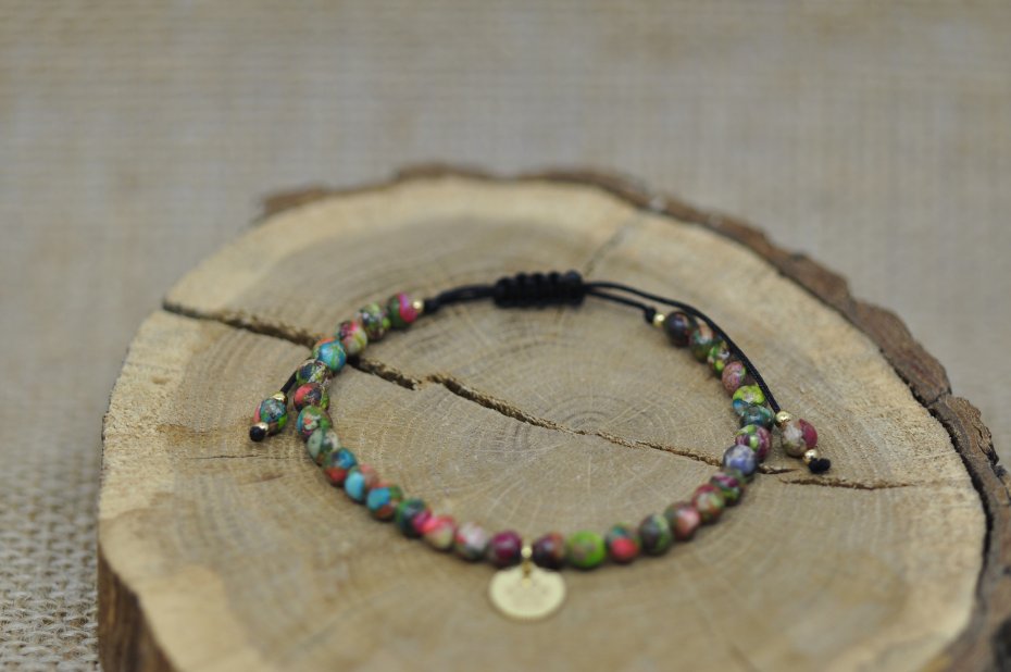 "Zapięcie" zrobione jest slotem płaskim makramy, dzięki czemu w łatwy sposób można dopasować bransoletkę do nadgarstka.