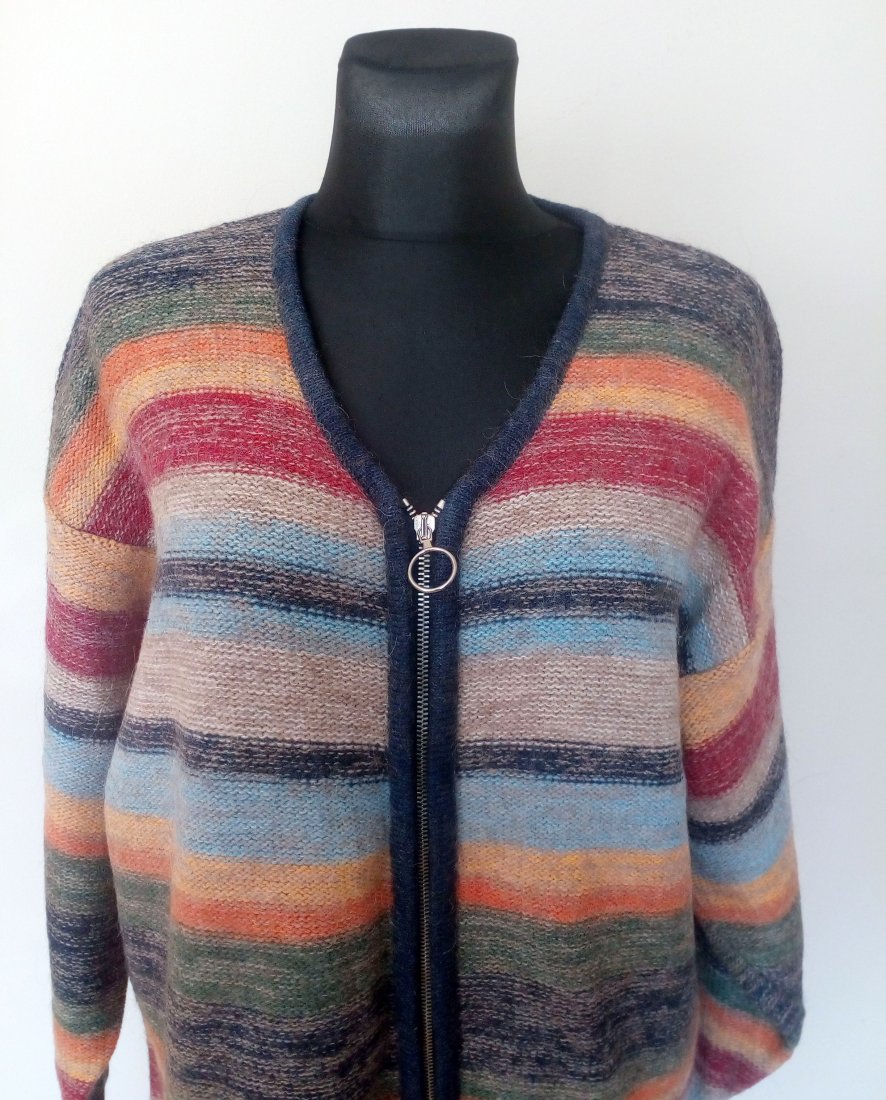 ładny, wełniany sweter z udziałem alpaki, zapinany na metalowy zamek, rękawy obniżane