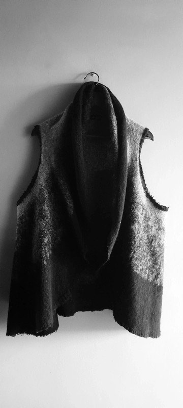 Szaro-Czarna oversizowa włoska kamizela z gotowanej mięsistej wełny, stan idealny, rozmiar od ok 40 do ok46