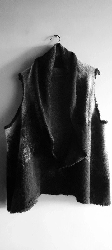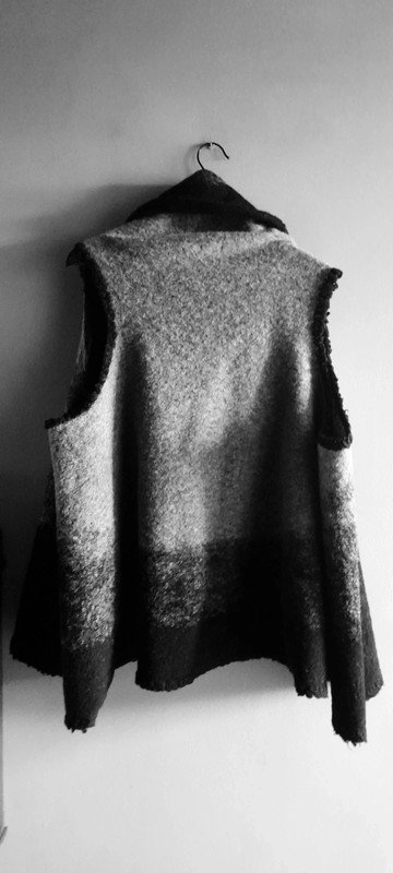 Szaro-Czarna oversizowa włoska kamizela z gotowanej mięsistej wełny, stan idealny, rozmiar od ok 40 do ok46